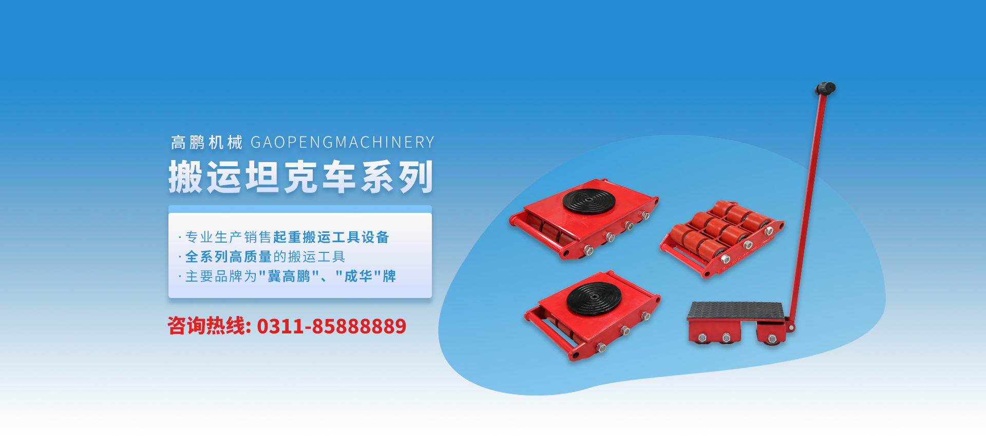 高鵬機械專業生產膠皮輪、鋼輪、尼龍輪系列各噸位型號搬運小坦克車;